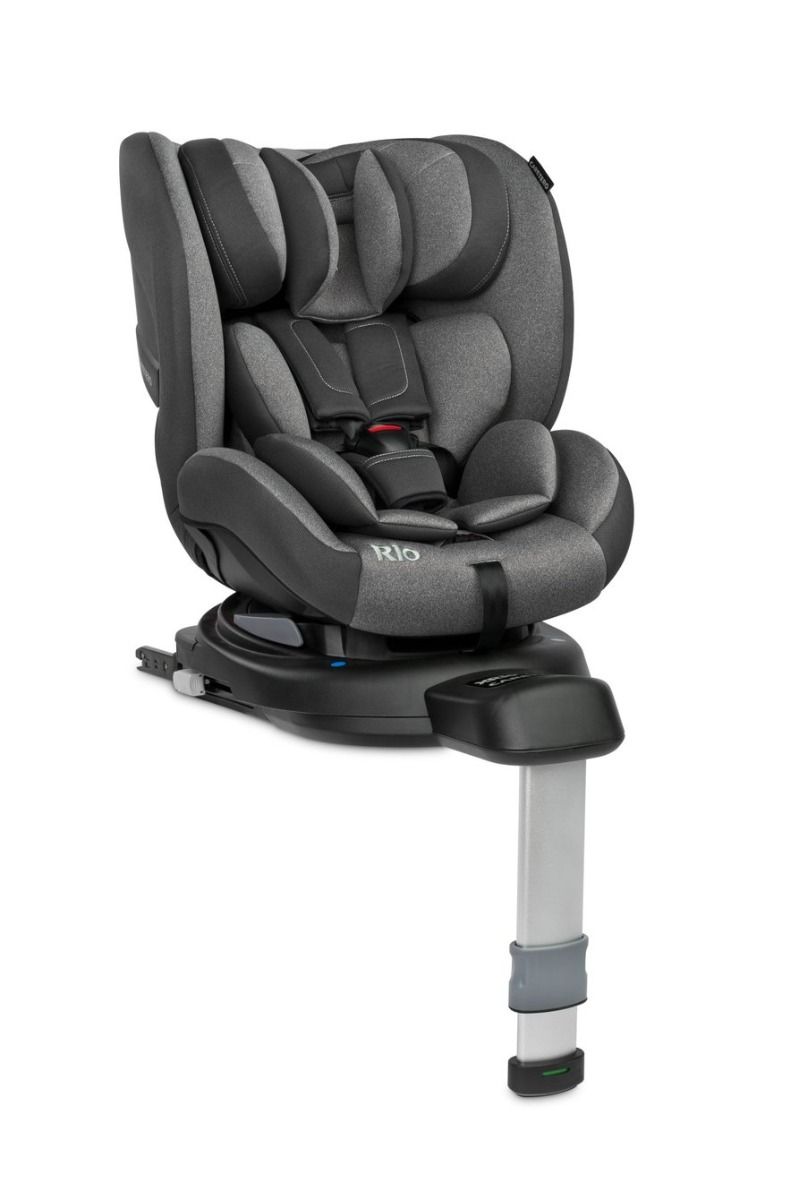 La silla de coche Rio, en un elegante tono gris, está pensada para los pequeños desde los 40 cm hasta los 105 cm de altura y con un peso de hasta 22 kg. Esta silla combina un diseño moderno con las máximas prestaciones de seguridad, contando con una base de fácil montaje y una pata estabilizadora. Incorpora anclajes ISOFIX que garantizan un anclaje sólido y seguro al coche. Su función de rotación de 360° es sumamente práctica, haciendo mucho más fácil el proceso de colocar y sacar al niño de la silla, mientras que su base adaptable la hace compatible con la mayoría de coches.