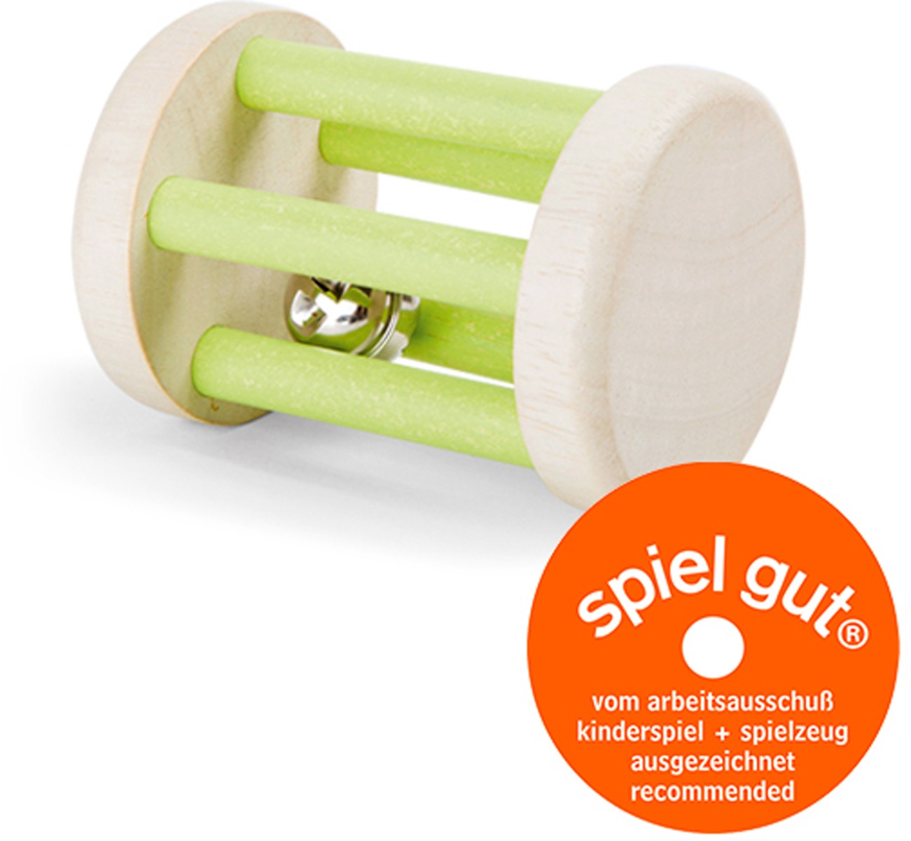 Este maravilloso sonajero de madera destaca por su alegre colorido y su cascabel. Las varas de madera son ideales para facilitar el agarre del bebé y fomentan la motricidad fina.