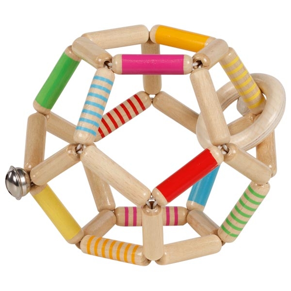 Produce placer al tacto, juguete, ejercita la motricidad, sonajero y primicia háptica. Todo eso se esconde tras este sonajero elástico pelota de colorido tradicional.