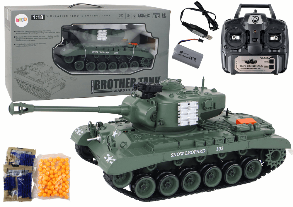 - Control Total: Utiliza el control remoto de 2.4G para mover el tanque en cualquier dirección, girar la torreta 360° y elevar el cañón hasta 30°.