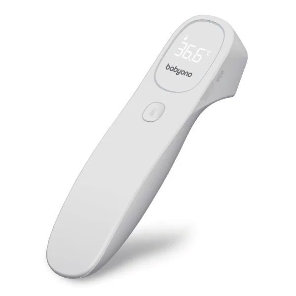 El termómetro sin contacto Babyono modelo JXB-311 es un componente médico. Al apuntar el termómetro hacia la frente, puedes medir la temperatura de manera rápida y precisa, siendo más fácil y conveniente de usar que los termómetros tradicionales orales, de brazo, rectales o de oído. Con solo presionar un botón, puedes obtener una lectura precisa en 1 segundo. Este termómetro también mide la temperatura de objetos, alimentos, líquidos y el ambiente. Una alarma de vibración silenciosa y única te permite medir la temperatura mientras tu bebé duerme. Su elegante pantalla LED retroiluminada te permite leer fácilmente la temperatura incluso de noche. Es un dispositivo médico, clínicamente probado en la UE.