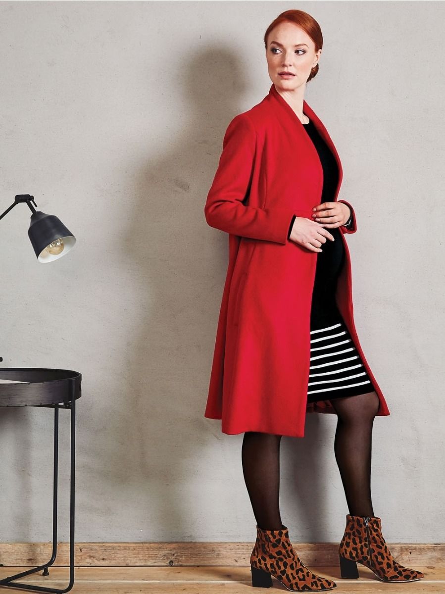 Confeccionado en un suave tejido mixto de algodón para un look semi ajustado, el vestido de maternidad de punto a rayas es el complemento perfecto para tu armario de trabajo. Combínalo con medias y zapatos para completar el atuendo, o simplemente vístelo con zapatos planos.